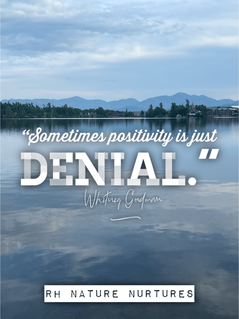 Denying your feelings and forcing yourself to feel positive when you feel anything but is called toxic positivity. It’s okay to acknowledge that sometimes life is just hard. Sometimes we get frustrated and sad. That’s normal and we need to allow those feelings to come and go without judging them as “bad.” They just are. They’re just feelings. They don’t define us.